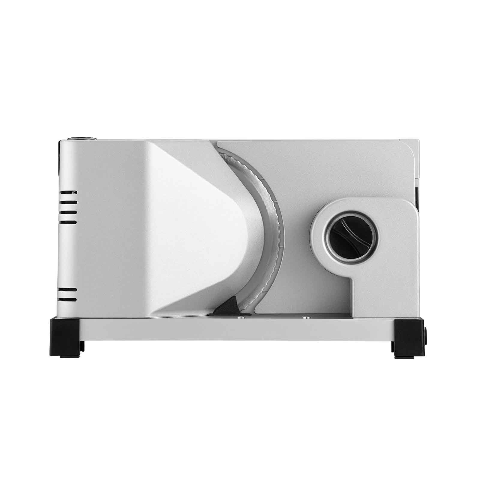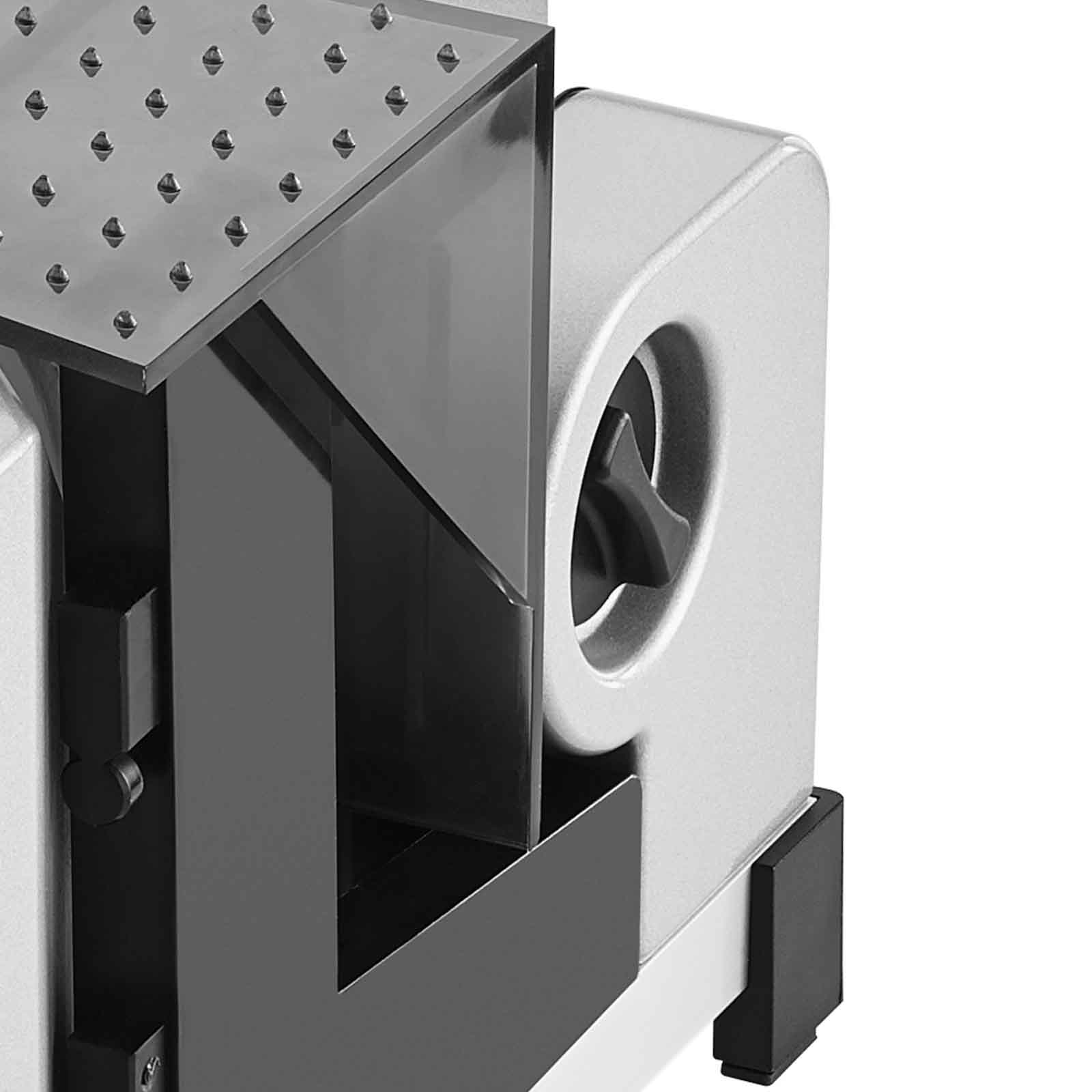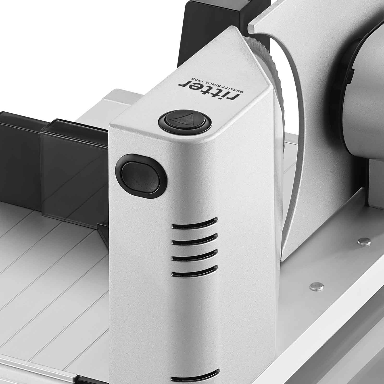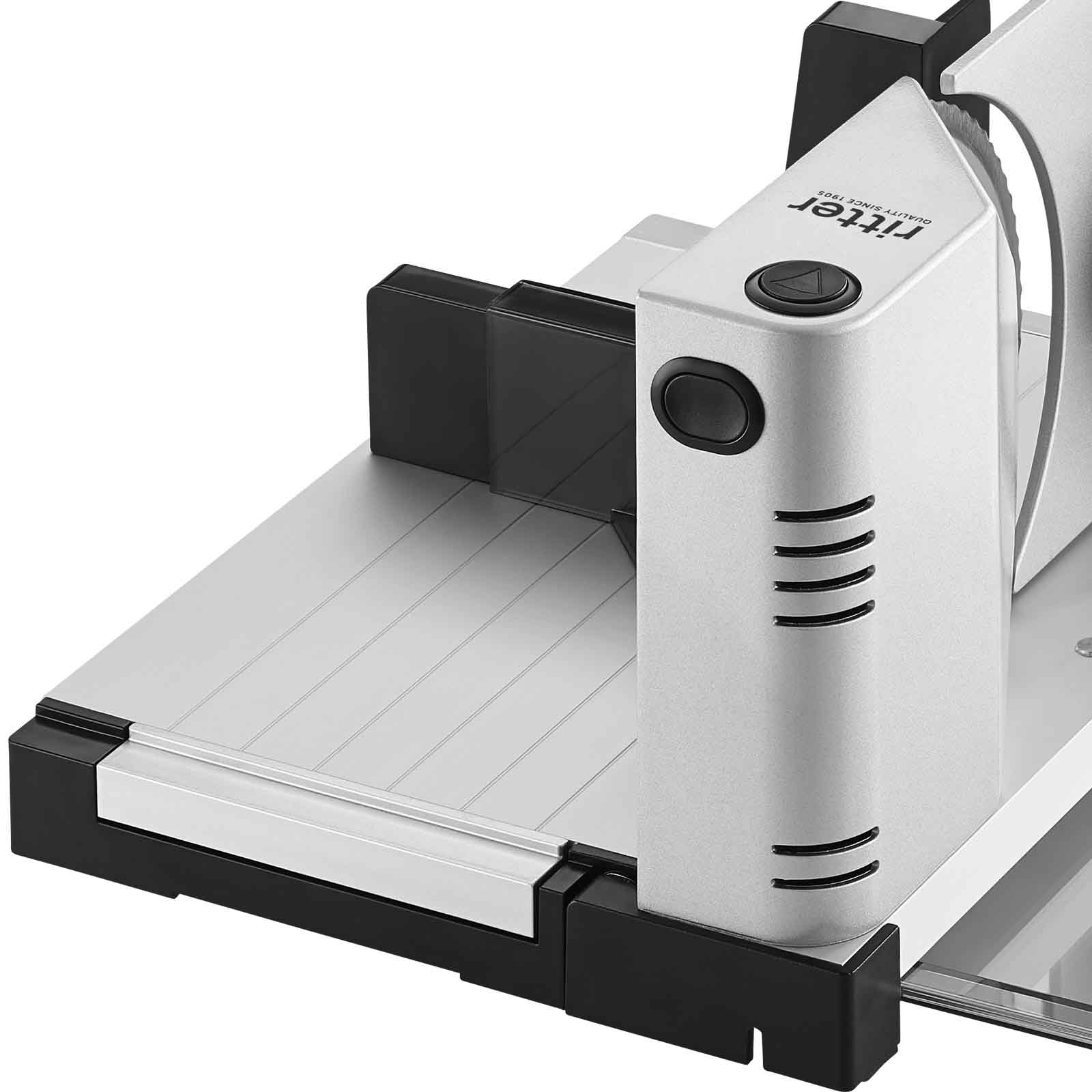 Weitere funktionelle Details unterstreichen die Benutzerfreundlichkeit des Allesschneiders: So kann das Messer zur Reinigung durch einen Bajonettschnellverschluss ohne Werkzeug unkompliziert abgenommen werden. Auch der Schneidgutschlitten lässt sich zur einfachen Reinigung abnehmen. Mit der breiten Auflegefläche ist dem Schneidgut so gut wie keine Grenze gesetzt.
