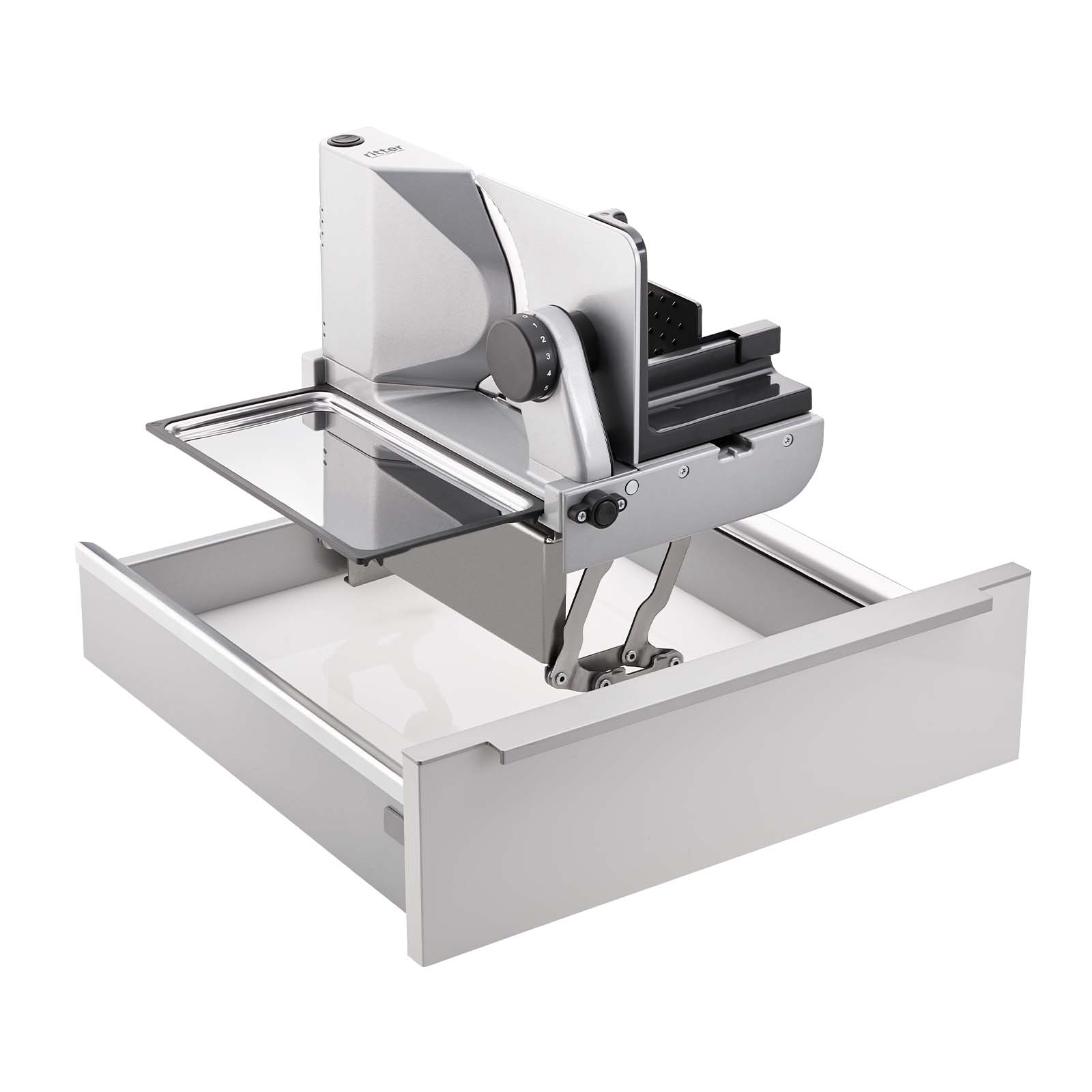 Der Einbau-Allesschneider BFS 72 SR-H steht mit einem einfachen Handgriff einsatzbereit in der Schublade. Genauso so schnell ist er auch wieder in der Schublade verstaut.